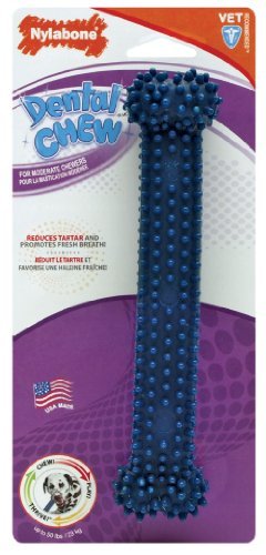 Nylabone Dental Ball is a therapeutic chew device specifically designed to aid in the fight against periodontal disease in dogs. Its raised dental tips actually attack plaque and tartar build-up. This product is clinically proven to reduce tartar build-up. Ideal for puppies and most non-aggressive chewing adult dogs. New flavor enhancement makes this product irresistible to dogs!
