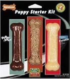 Specially designed for young puppies, each bone in this package is recommended for specific stages of your puppy's teething. For Stage 1 (from 2 months) use the Puppy Bone. This chew is more pliable than regular Nylabones and is specifically designed to assist in the growth and development of teeth and jaws. For Stage 2 (from 3 months) use the Healthy Edibles Bacon Flavored Bone. This healthy treat provides a safe and healthy alternative to rawhide and processed animal parts. For Stage 3 (from 4 months) use the Chicken Flavored Durable Bone. This bone is recommended for growing puppies whose jaws are getting stronger. Longer lasting than the Puppy Bone, this chew is designed for more aggressive chewers.