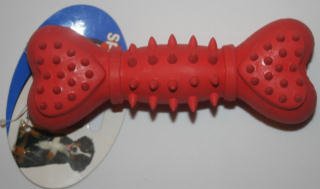 You've made a great choice. All Dura Flex dog toys are made from flexible rubber for a soft, yet durable dog toy. Size: 5 1/2 inches. Color: Red