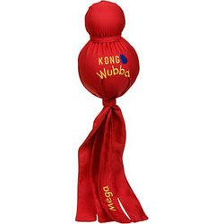 Kong Mega Wubba is a Dog's Best Friend. Long tails make it easy to pick up, without grabbing a slimy tennis ball. Dogs like to play tug while you hold the tails. The tails on the Kong Mega Wubba Dog Toy make it easy to throw. Dogs go for the squeaker and get excited by the flapping tails as they shake it back and forth. Kong Mega Wubba Dog Toy is made of reinforced ballistic nylon and has a squeaker. Assorted colors of red, blue and purple. Please let us choose for you!